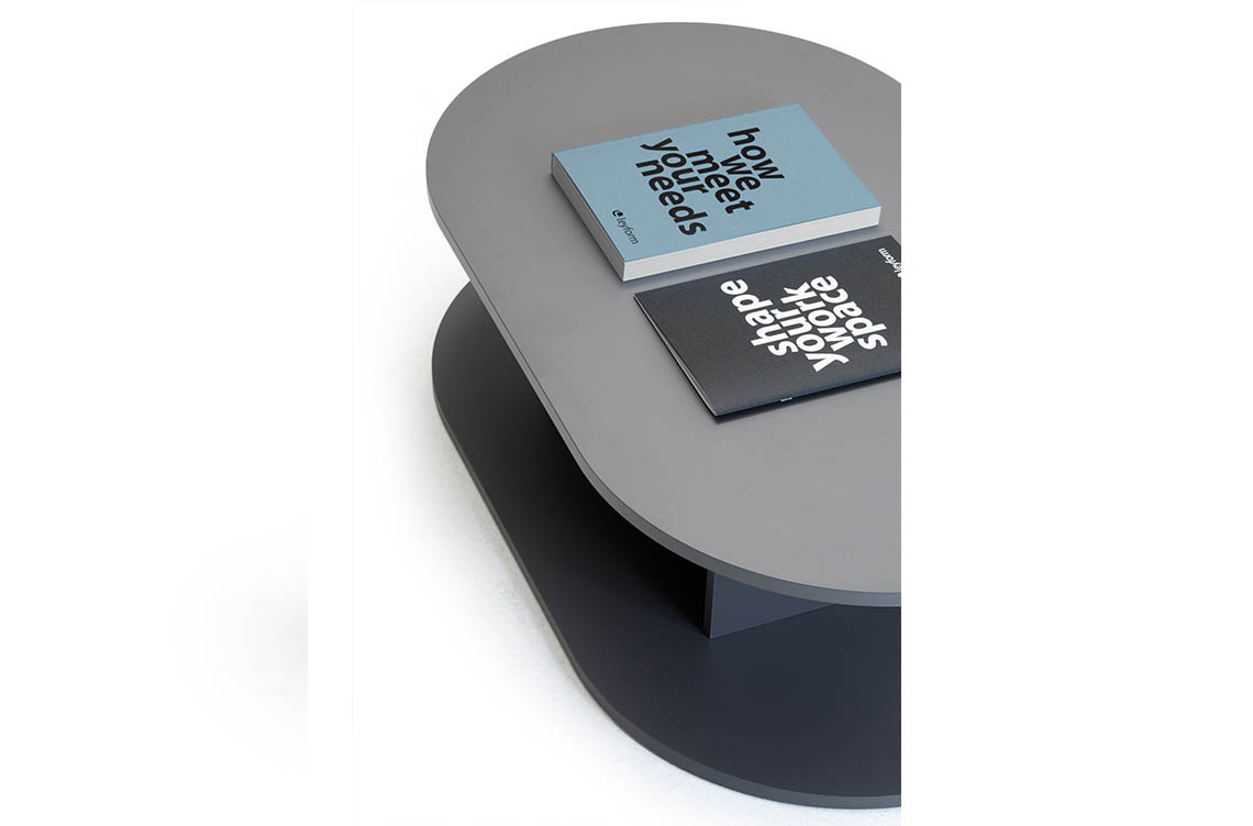 - Repräsentativer, ovaler Couchtisch als zentrales Gestaltungselement für Lounge-Landschaften und moderne Empfangshallen.
