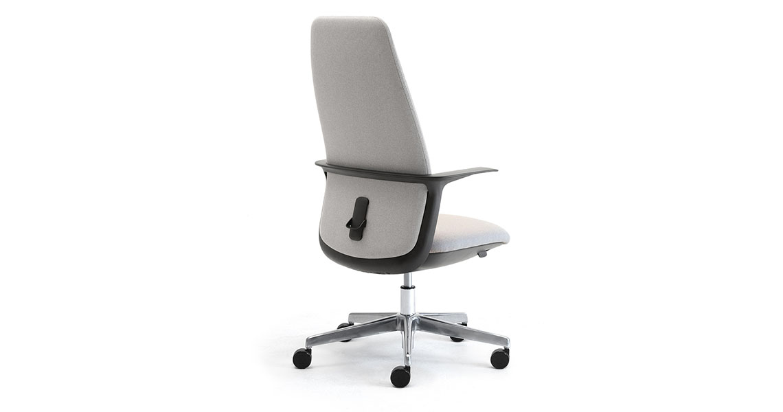 Der Sessel Aura für Chefbüros und Arbeitsplätze setzt neue Maßstäbe für das Design und den Komfort von Bürostühlen durch eine maximale Vereinfachung der Linienführung und die Zugänglichkeit aller Bedienelemente für Einstellungen.